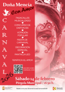 El carnaval vuelve a Doña Mencía con una tarde pensada para celebrar, compartir y dejarse llevar por la alegría. El próximo sábado 14 de febrero, a partir de las 16.30 h. la Pérgola del Parque Municipal se llenará de color, música y disfraces con una temática muy especial: el amor 💘