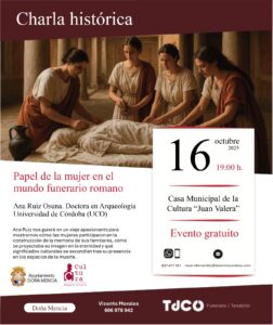 Tanatorios de Córdoba nos invita a esta interesante charla histórica, sobre el papel de la mujer en el mundo funerario romano. La llevará a cabo Ana Ruiz Osuna, Doctora en Arqueología de la Universidad de Córdoba.