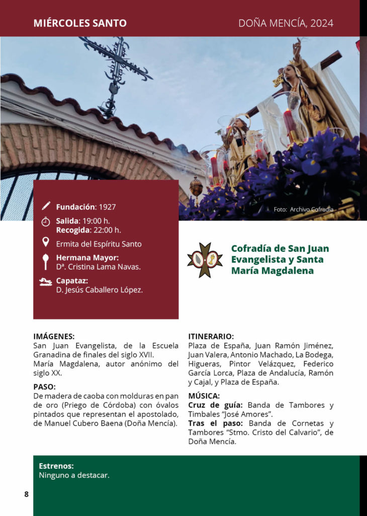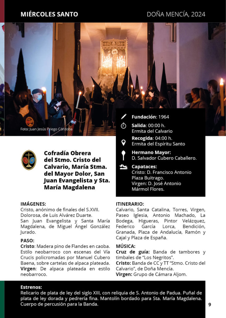 COFRADIA OBRERA DEL SANTÍSIMO CRISTO DEL CALVARIO MARÍA SANTÍSIMA DEL MAYOR DOLOR SAN JUAN EVANGELISTA Y SANTA MARÍA MAGDALENA